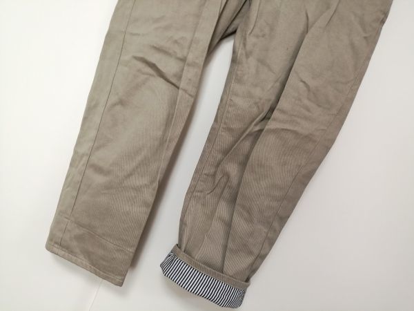 裾を折り返すとストライプ柄の見えるデザインのコットンツイルパンツです。