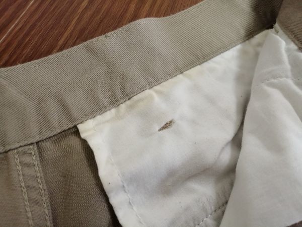 ダメージ箇所 :左もも上辺りに小さなシミがあります。(画像4)ウエスト内側の白い生地に薄茶色いシミがあります。(画像9)