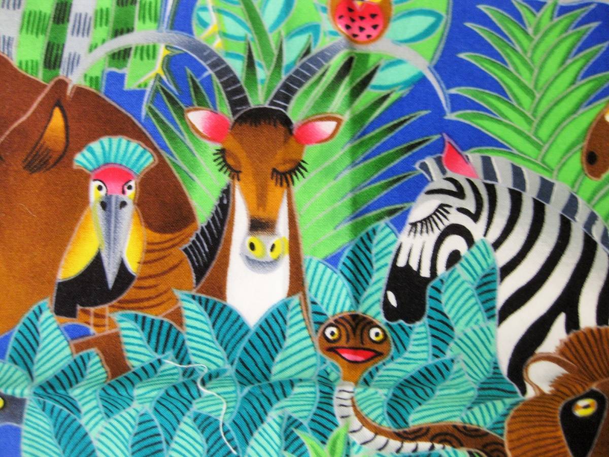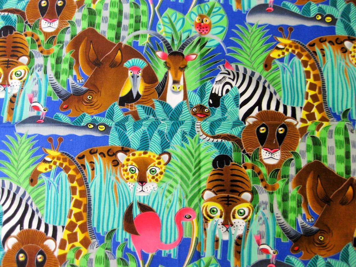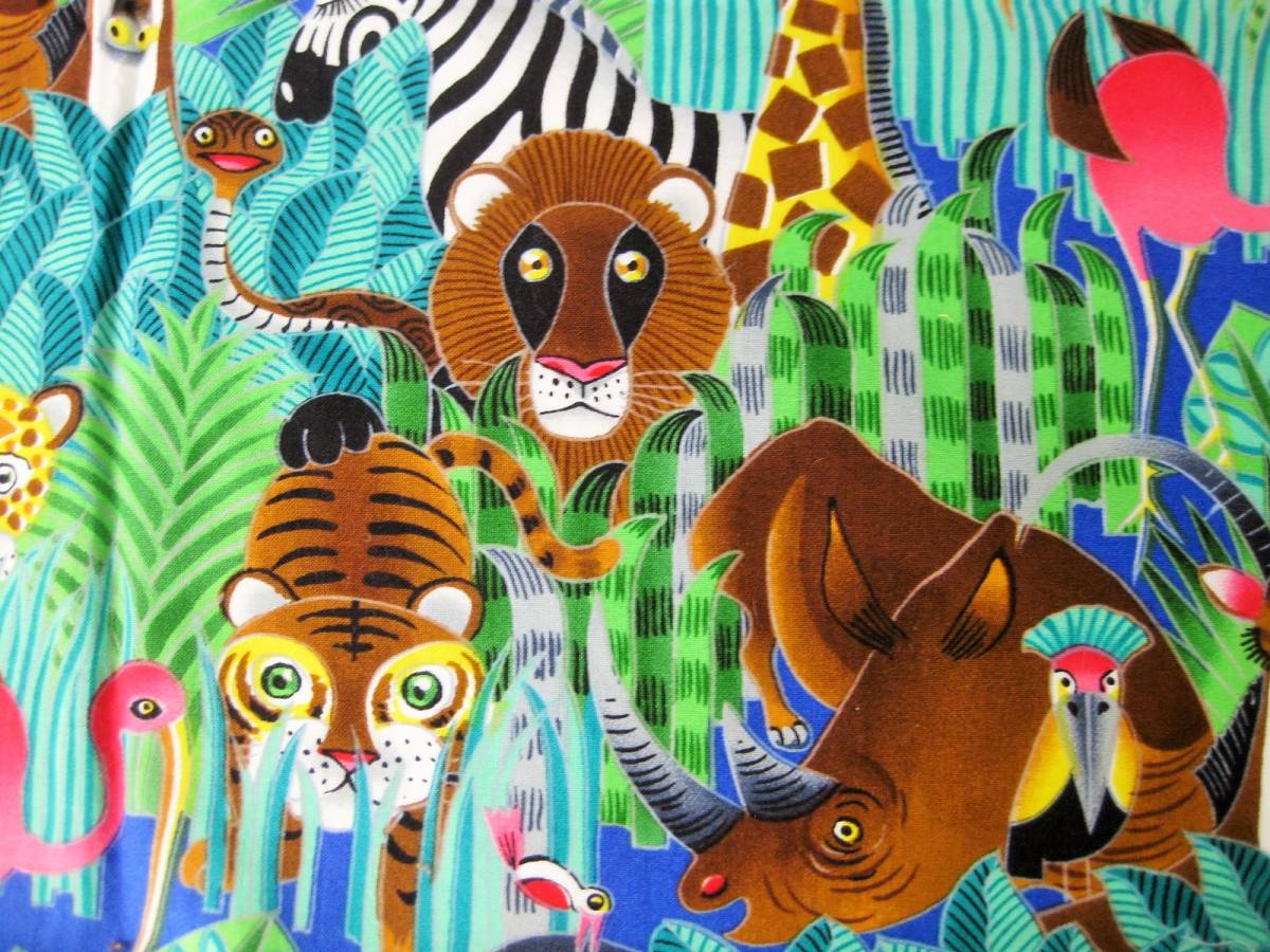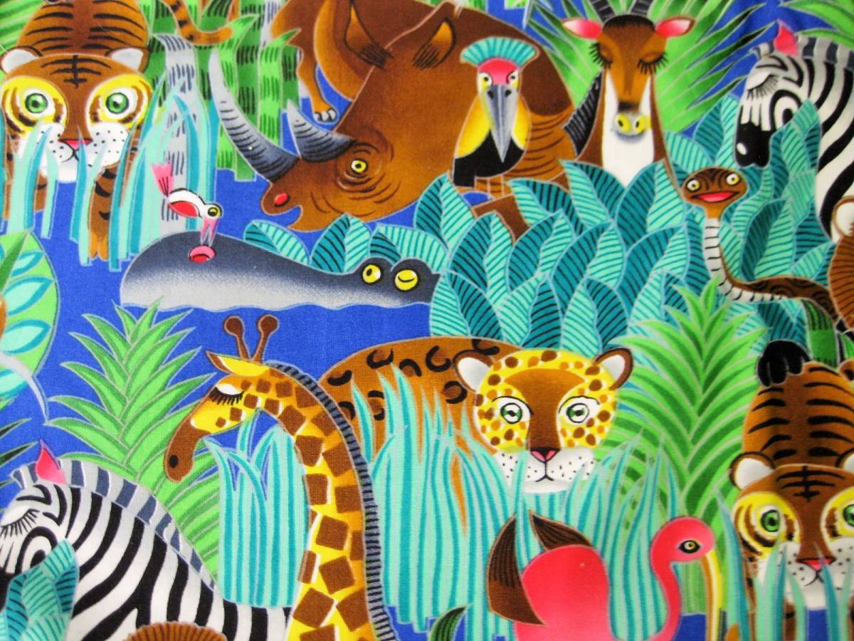 ■IK 100cm×60cm はぎれ ジャングル 動物 生地 カラフル プリント イラスト