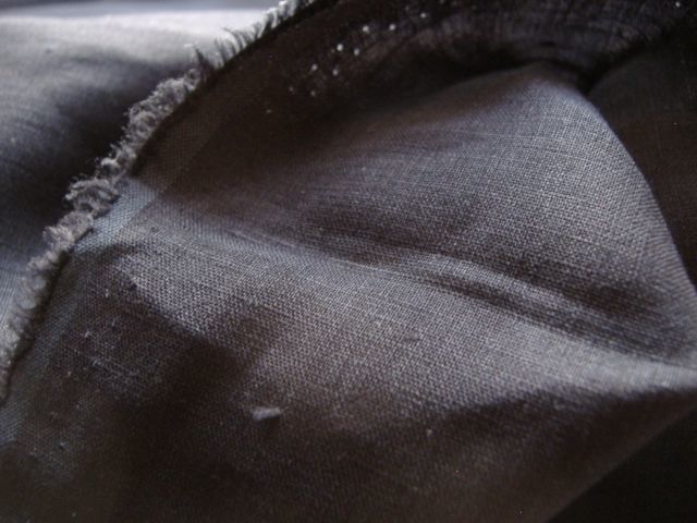 画像より、もう一段濃色です。濃紺に黒が入ったようにも、黒に濃紺が入ったようにも見えます。薄手です。透け感は控えめだと思いますが、強い陽射しの下では薄っすらシルエットがわかるかもしれません。未使用。