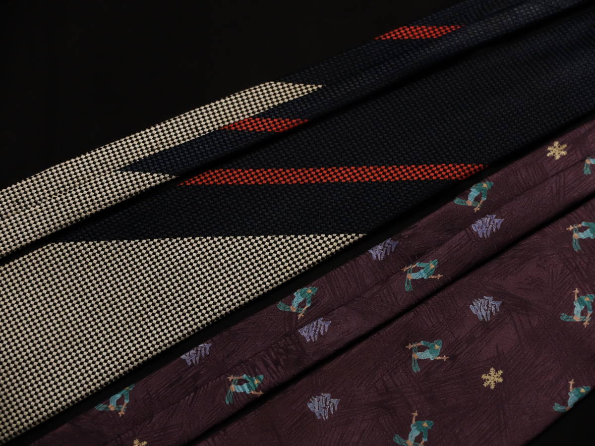 トレンド 廃盤 希少70 90s 年代 ビンテージ 総 小紋 レジメンタル 柄 ネクタイ 2 本 セット シルク絹 日本製オールド レトロレア HANAEMORI