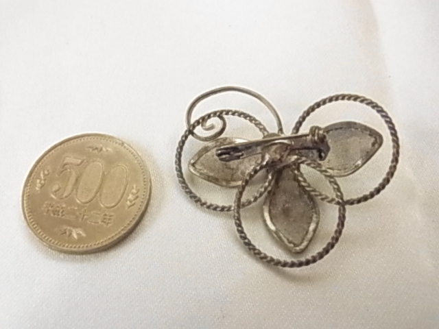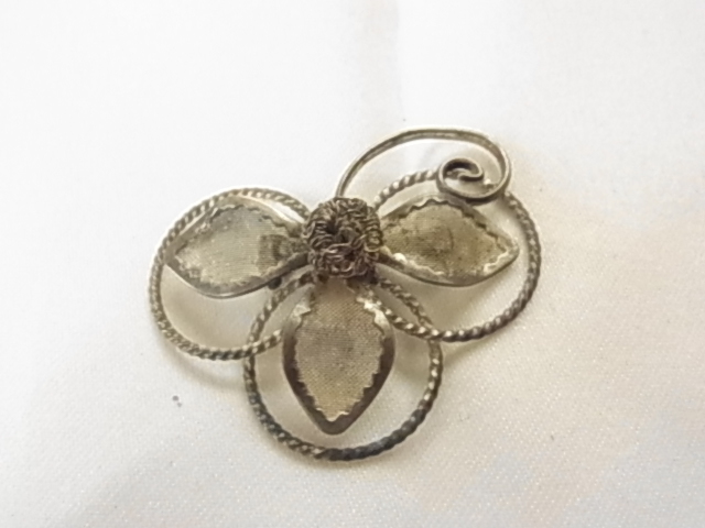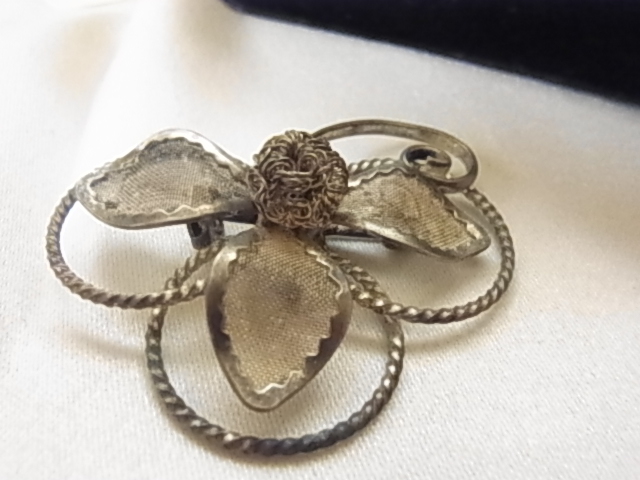 アンティークカラー メッシュのような素材も使われているデザインのブローチ▽