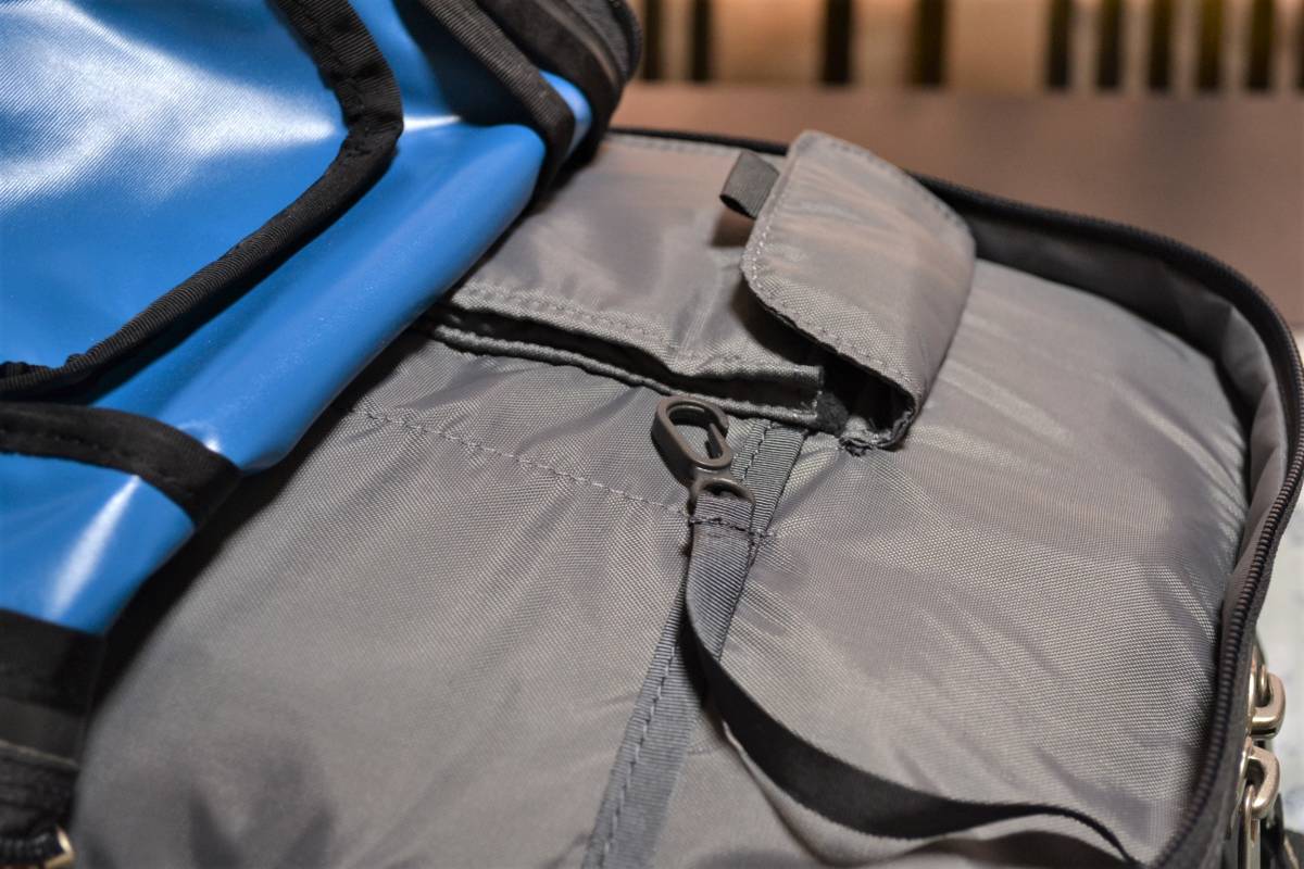 正面とサイドの素材には摩擦強度と耐水性に優れるTPEファブリックラミネートのポリエステル地を採用、ファスナーには高耐久性防水ファスナーを使用しある程度の雨風をしのげる構造になってます。