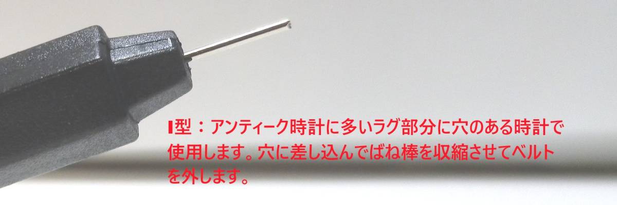腕時計本体とベルトを外す為のばね棒はずし工具です。普及品のコンパクトなショートモデルです。2種類のばね棒はずしとして使用出来ます。Y型ばね棒外しとI型ばね棒外しです!これがあれば簡単に時計からベルトを外す事ができます。男性・女性兼用です。新品です!特殊形状を持つ時計及びベルトの場合は外せない事あります、予めご了承下さい。