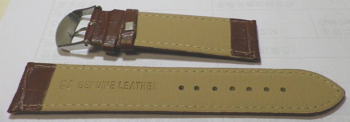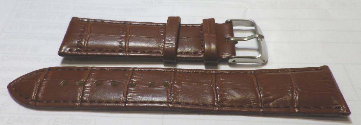 22MM ショートモデルばね棒はずし&ばね棒付き クロコ型押し 本革ベルト新品 茶 肉厚