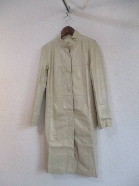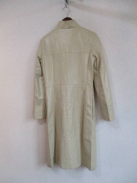 商品紹介 | 革のような加工が施された素材のコートです。 ハイネックに隠しボタンでスッキリとした形です。 色はベージュで、柔らかくて着やすい素材です。 《素材》 表地:ナイロン100%(ポリウレタン樹脂使用) 裏地:キュプラ100% |