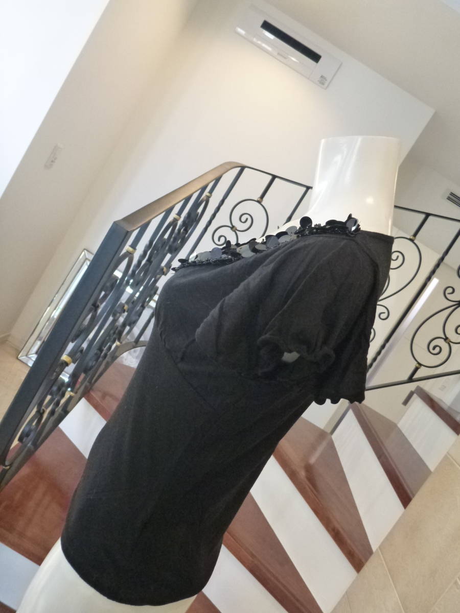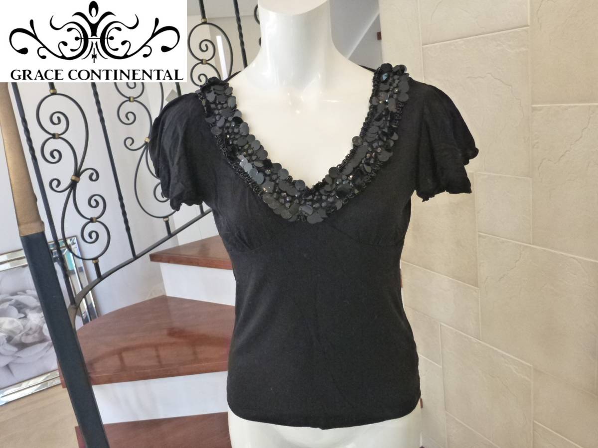 美品 GRACE CONTINENTAL|グレースコンチネンタル★ 黒ブラック スパンコール ビジュー トップス 36 M相当