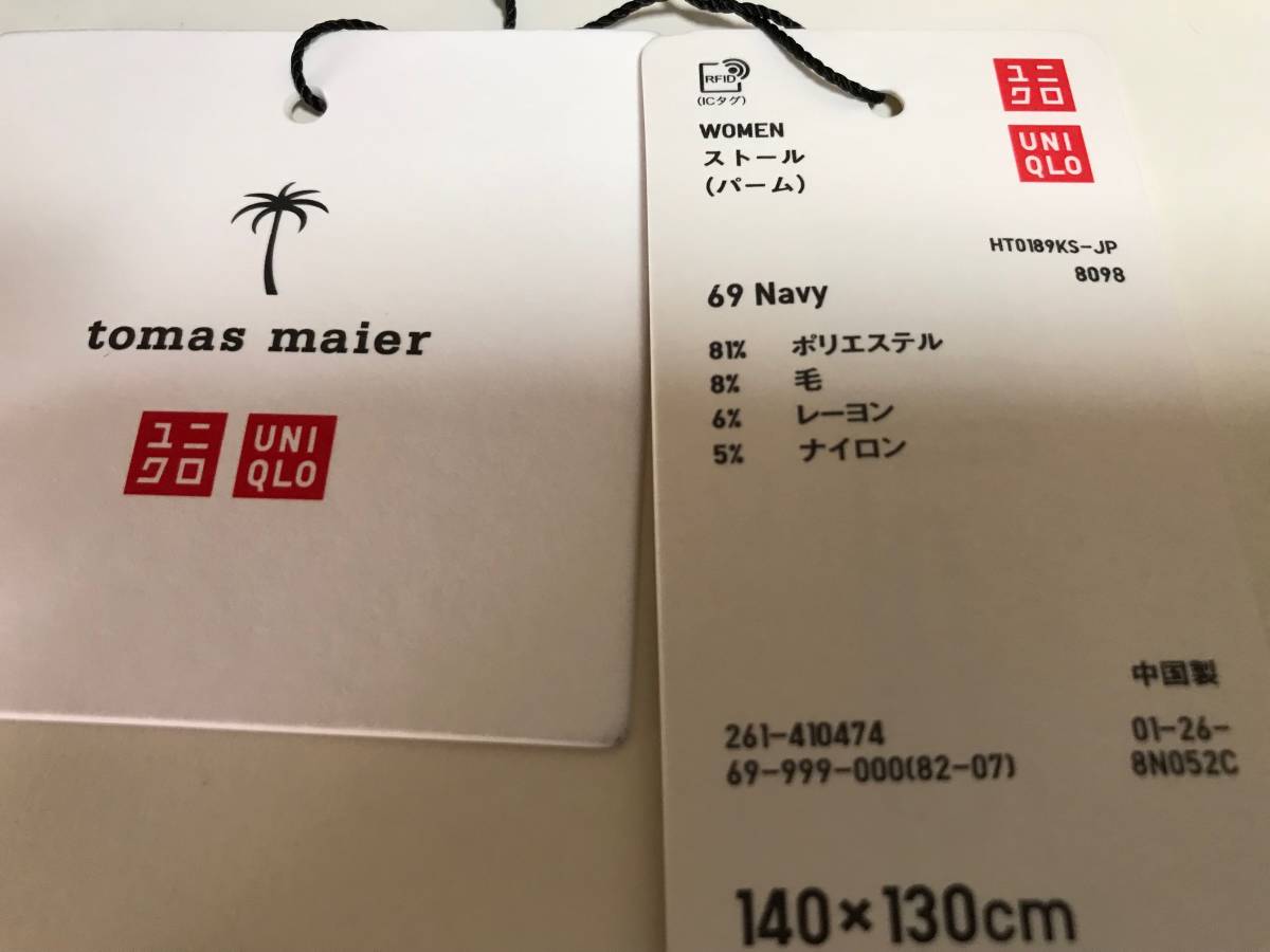 本品は、ユニクロ の Tomas maier プリントストールになります。