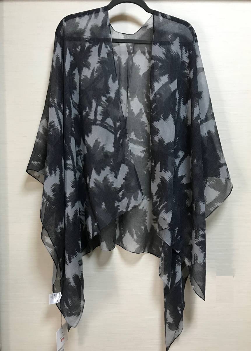 画像2枚目の様に長方形の生地にスリットが入っているので肩掛けもさまになります。