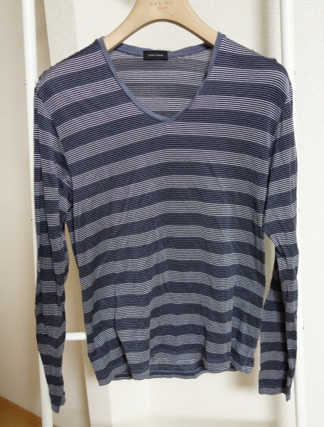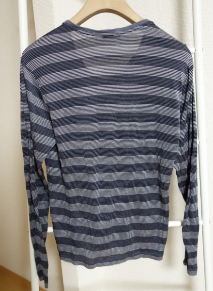 | 商品詳細 ■きれいなシルエット。シックなボーダーがおしゃれです。 ■色:グレー ■素材%;綿50 レーヨン50 ■サイズ表記:46 実寸:cm 肩幅;44 身幅;48 着丈;67.5 袖丈;65.5 ■生産国;日本 ■状態;usedですが特に記載するダメージありません。 |