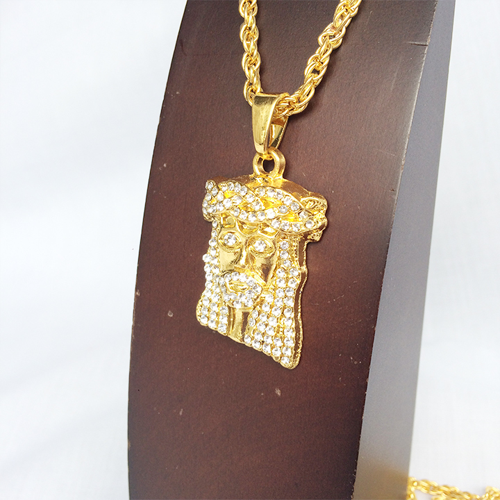 フェイス全面にジルコニアが散りばめられた豪華なジーザスネックレス。