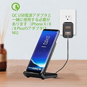 スマホの置く位置のずれはほとんど問題なく、横置きにしてもきちんと充電ができます。 | 【iPhone 8 / iPhone 8 Plus / iPhone X 対応】このqi急速充電器はiPhone 8 / iPhone 8 Plus / iPhone Xに対応できます。底にゴムがあるので、iPhoneの下も傷がつきにくいです。 | パッケージ内容: 1xQi 急速 ワイヤレス充電器 1xType-C充電ケーブル 1x日本語取扱書 ★使用するのが就寝時と言うのもありますが正面に光るLEDが眩しいであれば、向きをかえてもいいです。 ★ワイヤレス充電距離が7mmまでですので、充電時に保護ケースを外したほうがいいです。金属など異物があると、青いライトが点滅して、充電できません。 ★充電中、充電器と携帯が普通に熱くなります。もし携帯の位置が偏位なら、充電できない、充電が不安定、発熱が高いと言う可能性があります。 |