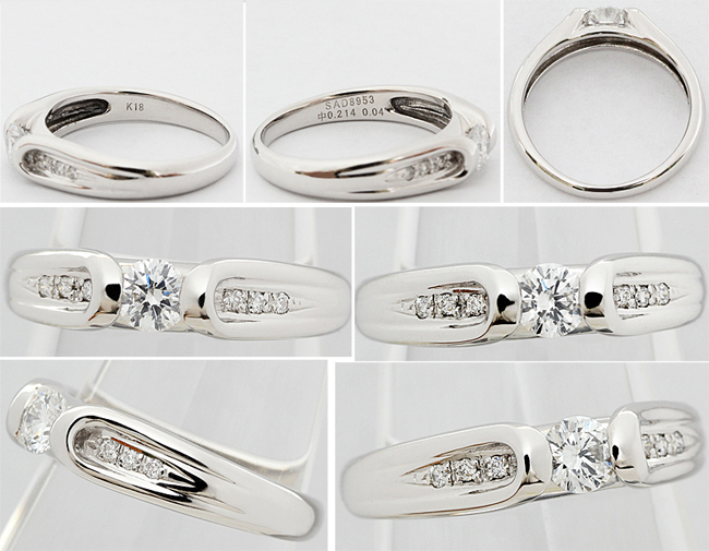 | 綺麗 上質☆ダイヤ 0.214ct 0.04ct K18WG リング 指輪 婚約 0.2ct 一粒 8.5号♪鑑別書付・送料込 | ||
