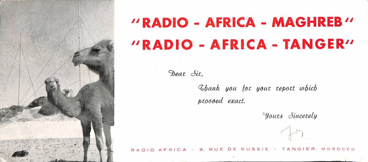 【商品名】・・・RADIO-AFRICA-TANGER(★ラジオ・アフリカ・タンジール)のベリカード。 【コメント】・・・1959年末廃局になりました。入手困難なベリカードです! 【国名・地名】・・・モロッコ王国★タンジール。 【受信データ】・・・1950年代?★SWを受信。 【記載事項】・・・未記入。 ★ヤフオクでの出品は、おそらく後にも先にもないと思いますのでこの機会を見逃さないで下さい! 【状態】・・・シワ、汚れ、シミ、焼け、破れ、色あせ等があります。 ■カードの状態は★画像を参考に判断して下さい。 ■この機会にぜひこのベリカードを貴方のBCLコレクションに加えて下さい! | |
