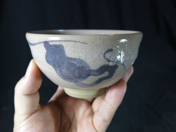 青瓢箪文様碗 銘「青ひょうたんの独り言」 抹茶 陶器 です。     コレクション整理での 出品です。