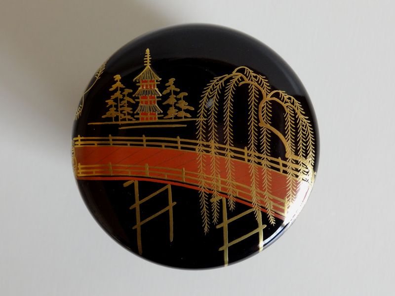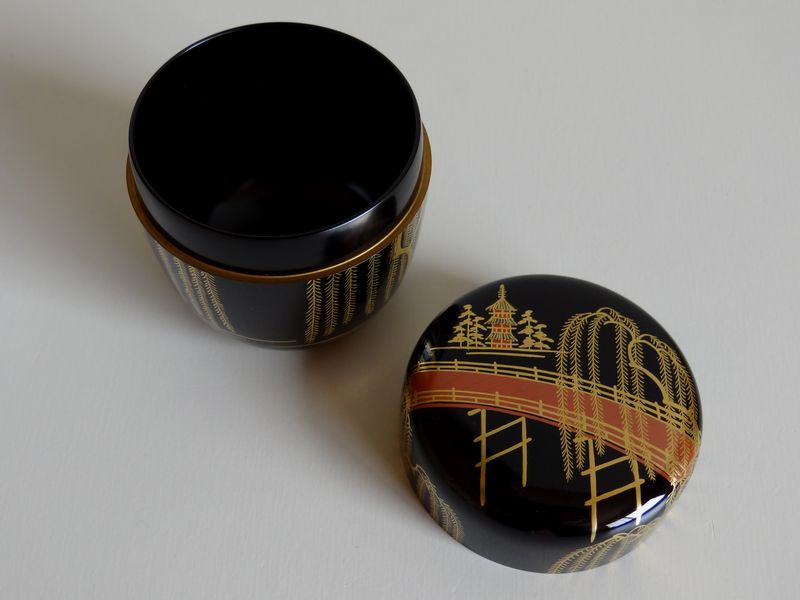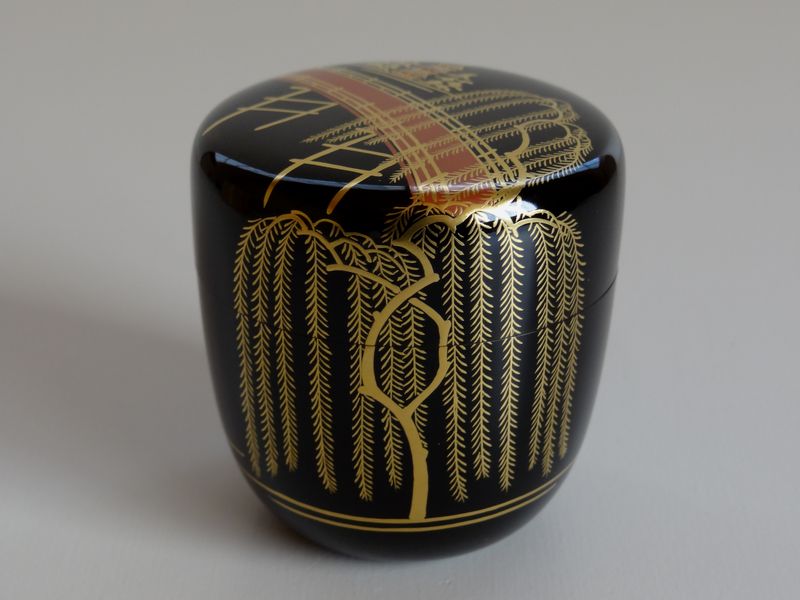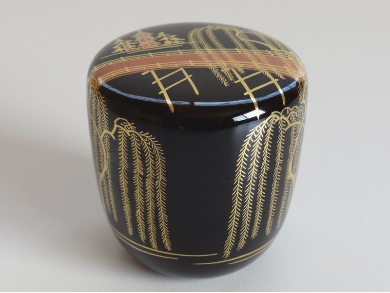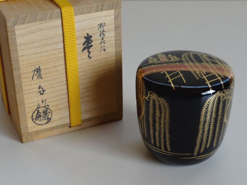 桜田慶舟 柳橋蒔絵の棗 共箱付です