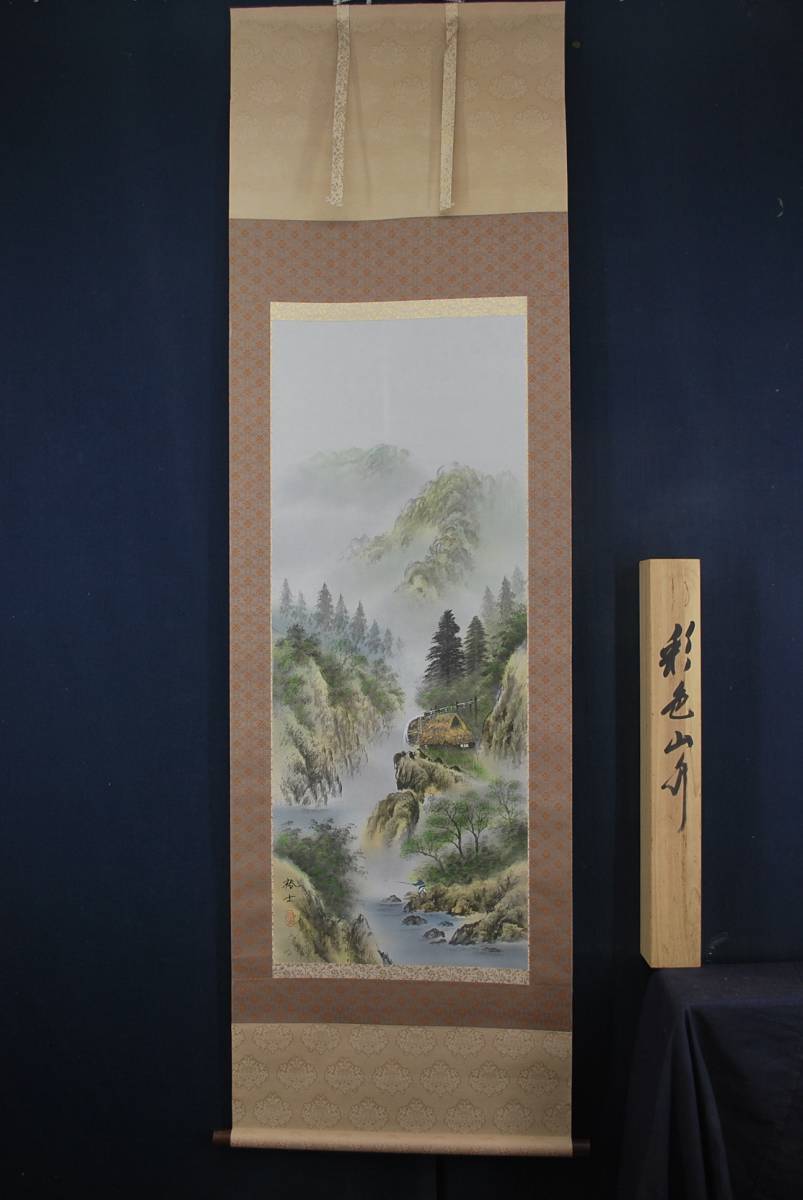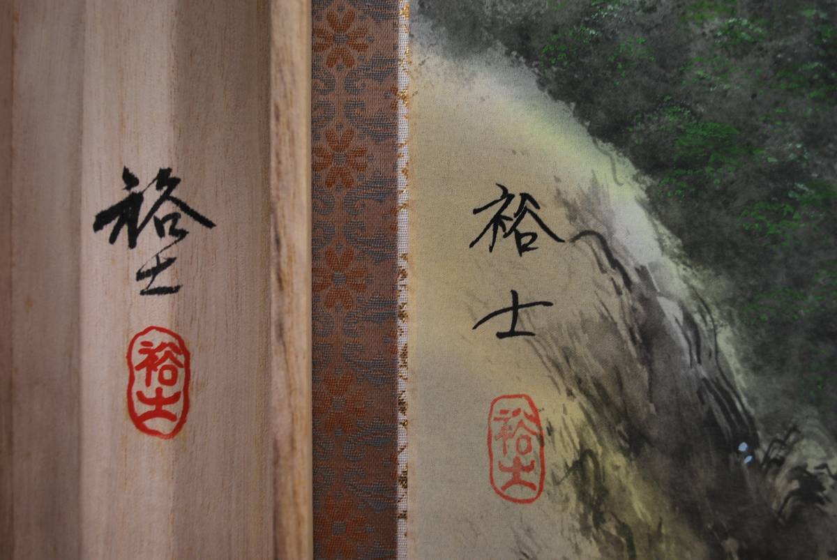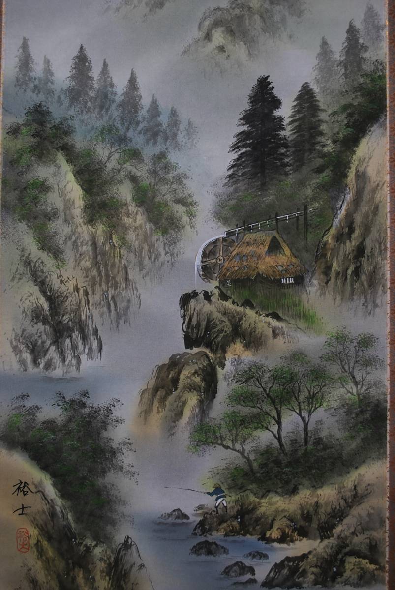 真作/裕二/彩色山水図//掛軸☆宝船☆M-906 J