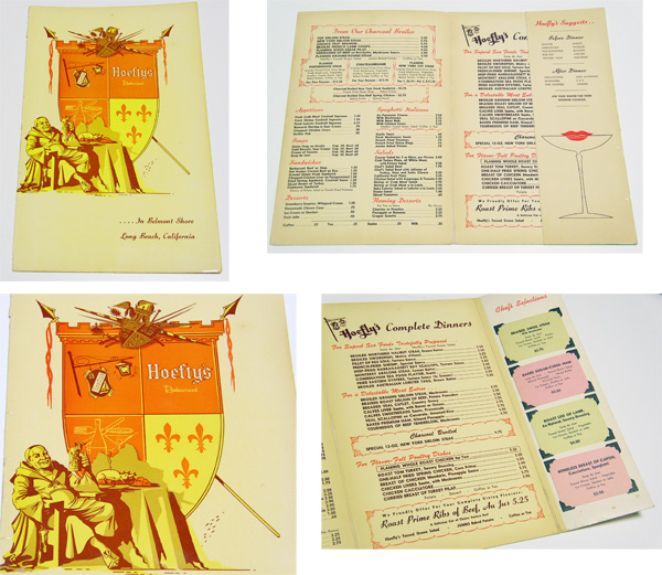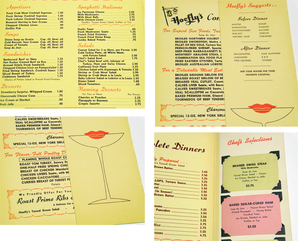 ヴィンテージ Hoefly's Cocktail Kiss Long Beach CA メニュー / 50s,ロカビリー,40s,アールデコ,レストラン,DINNER,ダイナー,アンティーク