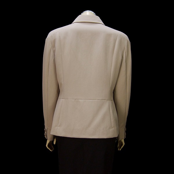 **・゜しなやかな上質シルク(絹)混の高級デザインジャケットです。優雅なサンドベージュ系のきめ細かな優艶ウール生地です。素敵なパネルシルエット×定番ロゴボタン留×裏地は光沢感のあるロゴマーク&ロゴ入り生地を使用しております。気品溢れる高級ドレスジャケットです。。*:.。(春秋向き)