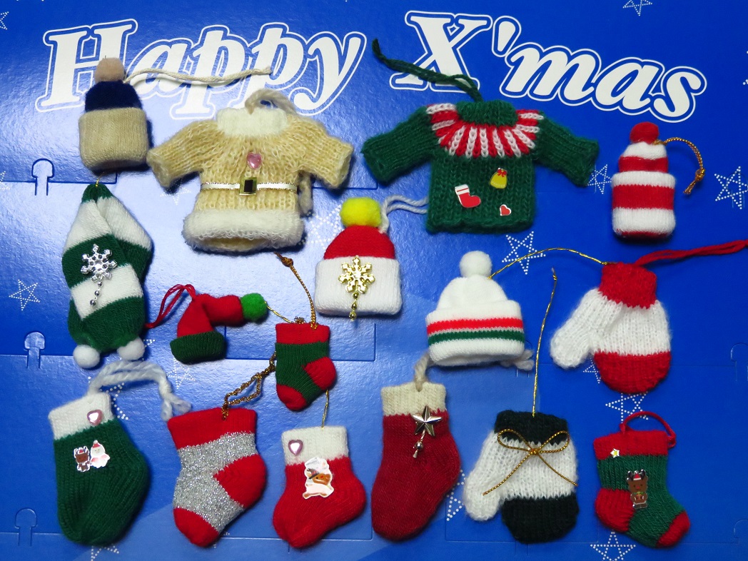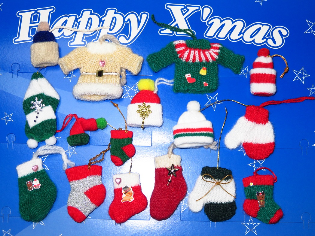 【☆クリスマスニット オーナメント16個☆】4 チャームニットソックス ボウシ セーターなど あったかニット ペット用品のX'masの演出&飾り