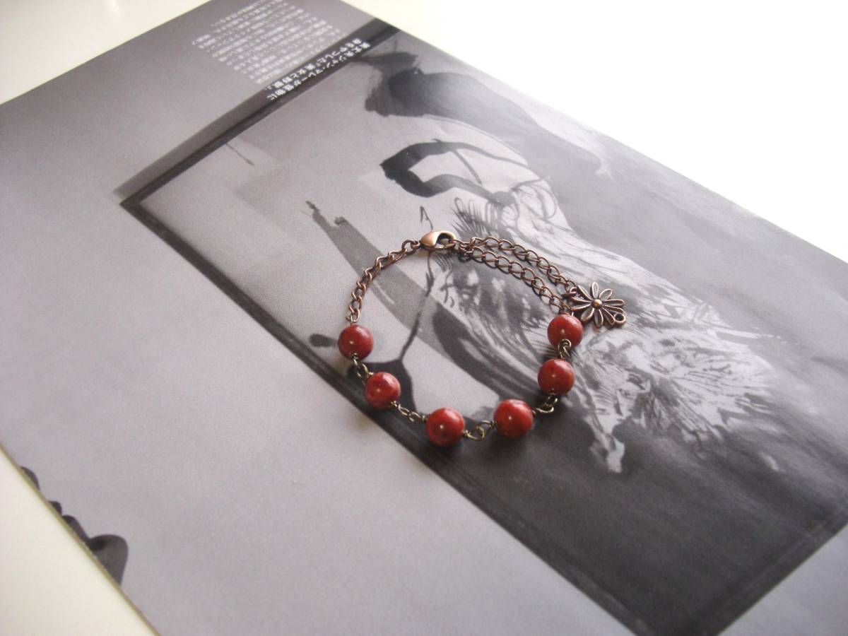シックな秋色を繋げて・・シリーズです♪大人の赤・・深い赤のスポンジ珊瑚のブレスレット2本セットです♪右の画像のシンプルなデザインは8ミリ位の丸玉のスポンジ珊瑚をランダムに繋ぎました♪長さは全長23センチ位です♪真ん中のブレスレットは8ミリ位のポンジ珊瑚にアンティークビーズや樹脂ビーズ、ワイヤーボールを合わせました♪長さは全長23センチ 位で調節自由です♪それぞれ単品やお揃いのネックレスも出品しています♪シンプルで飽きの こないいつまでも着けられるデザインを考えて作り ました♪ハンドメイドをご理解頂いてノークレーム、ノーリターンでお願いします