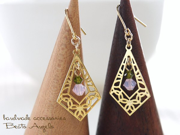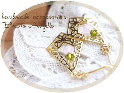 ◇◆+angelo+スワロフスキーとKi透かしのピアス(p-026)ローズウォーターオパール G チタン 樹脂 イヤリング