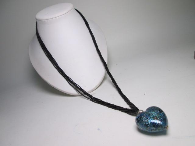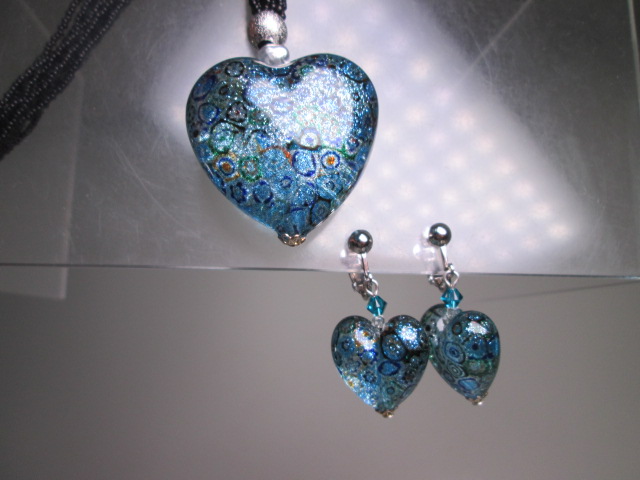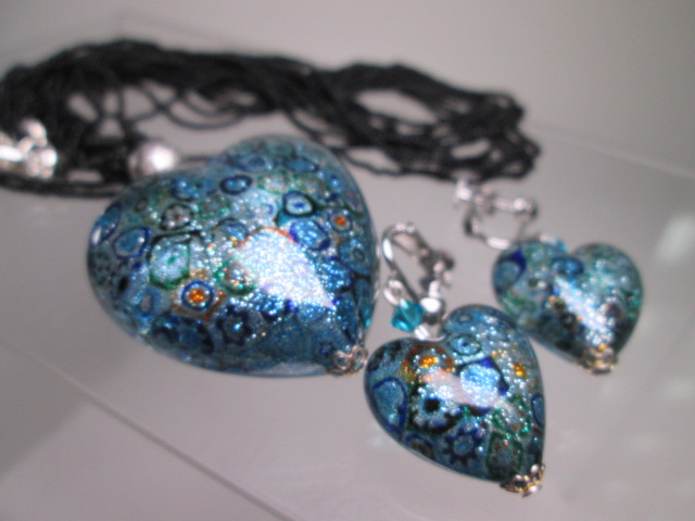 ☆とても綺麗なハート形吹き硝子ペンダント&ビーズ6連ネックレス&イヤリング セットで
