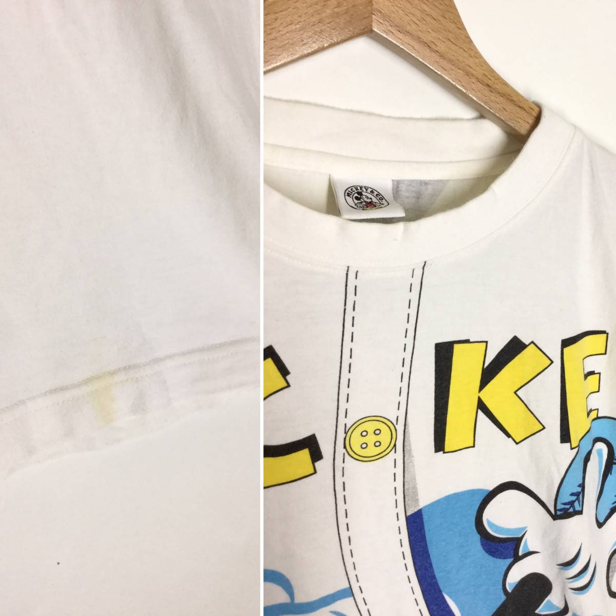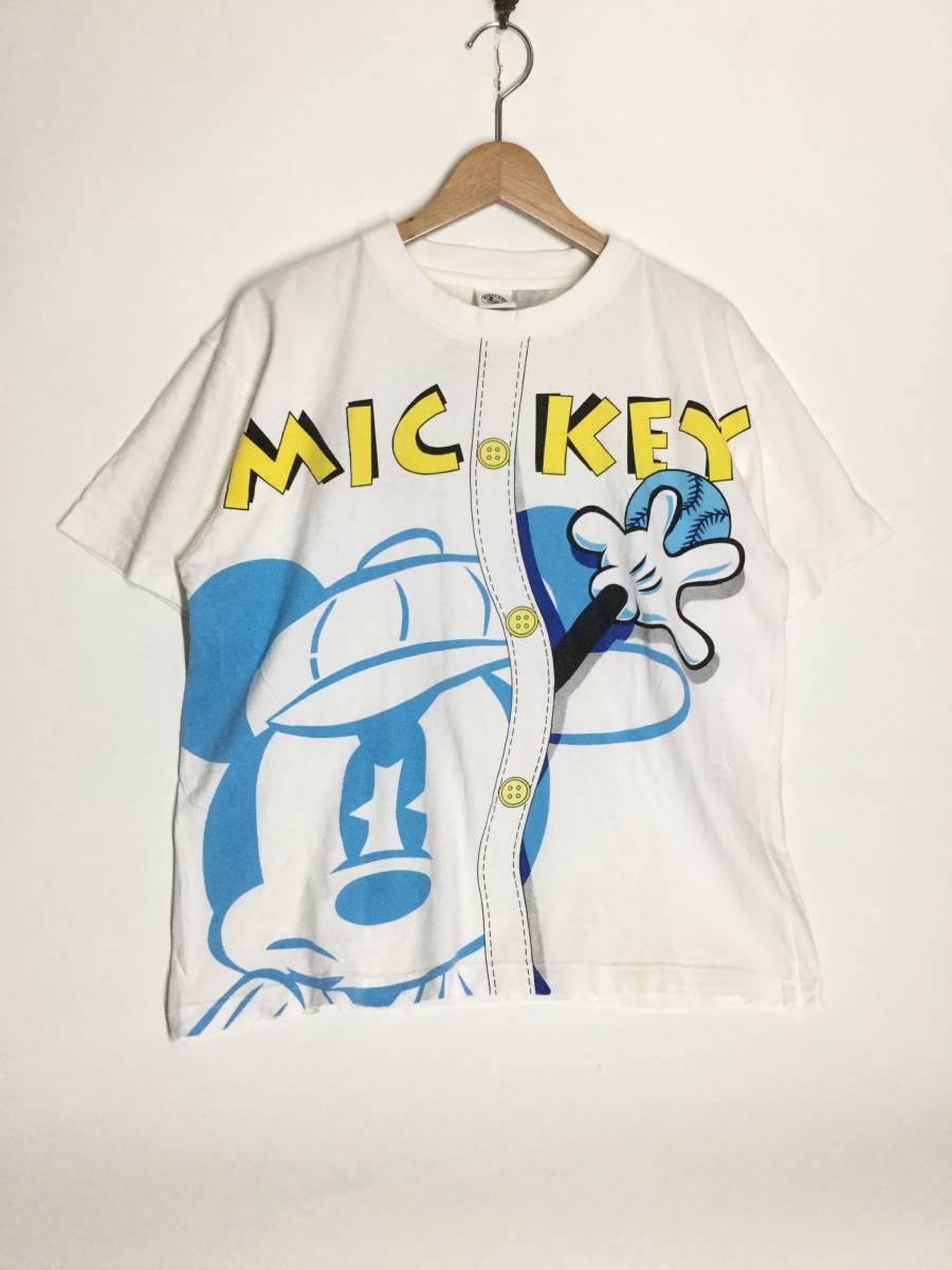 ★ MICKY & Co. ベースボールシャツ風 プリント ミッキー 半袖Tシャツ 白 Disney 野球 M