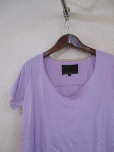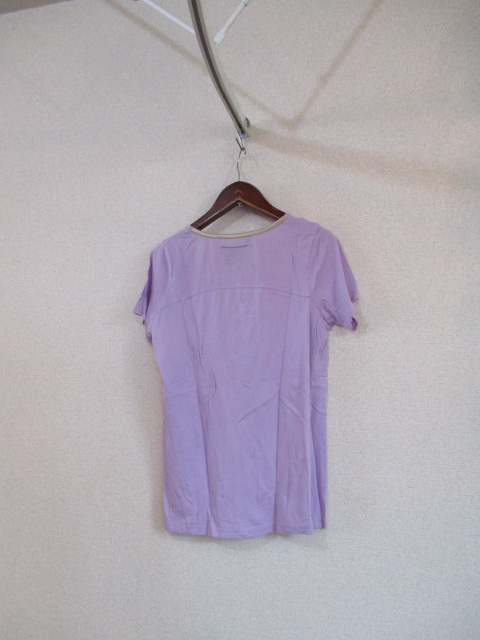 商品紹介 | 紫の半袖カットソーです。 襟周りと袖口は切った部分にステッチがしてある形になっています。 《素材》 綿60% レーヨン40% |