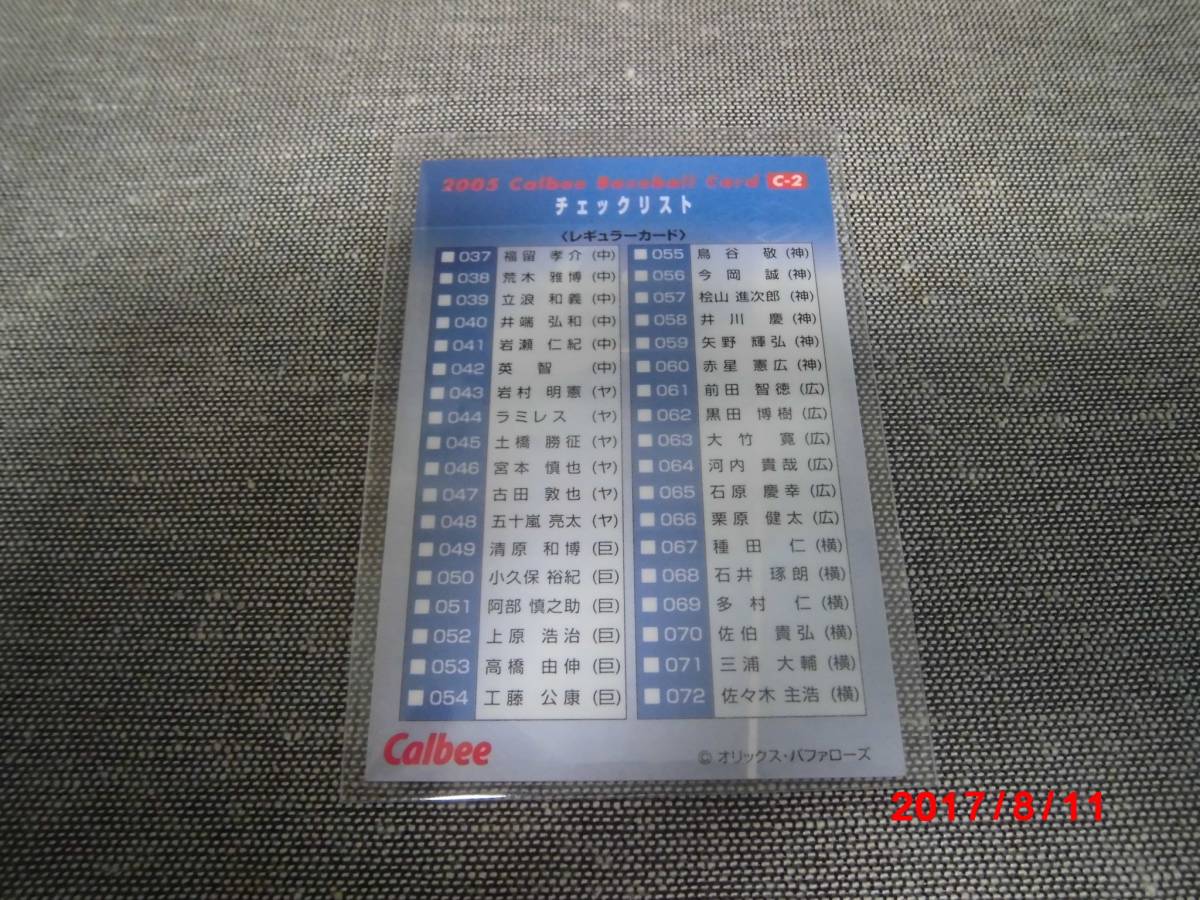 2005 Calbee Baseball Card カルビー プロ野球チップス 2005 スプリングキャンプ オリックス・バッファローズ C-2(中古)です。
