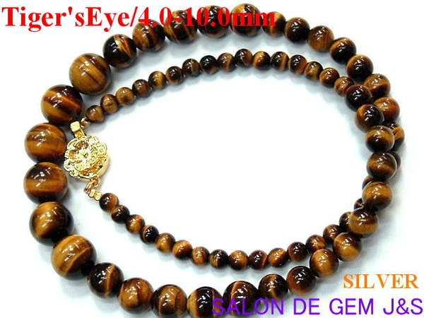 【新品】【財運/仕事運】【SV:高級天然タイガーアイ 風水・開運ネックレス】10.0-4.0mm/43cm