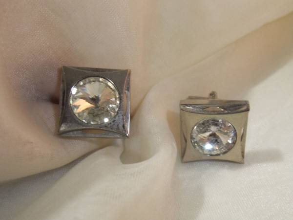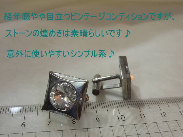 リッチスタイリッシュデザイン♪オーストリア製クリスタルストーン使用カフスボタンカフスリンクスシルバーカラー☆クリスタルラインストーンルース使いながらすっきりとしたデザインの良いシンプル感☆紳士系は勿論、粋でちょい悪親父系や英国スタイルやビンテージアンティーク系がお好きな女性にも☆未使用ですが保管期間ありますのでやや経年感ありです☆美品の古くてキッチュな品♪