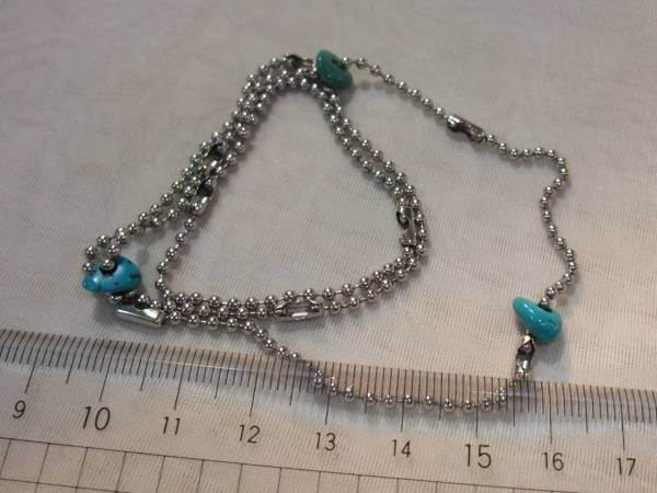色々便利♪フリーチェーン☆ブレスやウオレットメンズアクセの脇役に☆本ターコイズ付きお得感あり☆アメリカ産の本ターコイズです☆36③