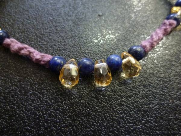 シトリンしずく ラピスラズリ マクラメブレスレット