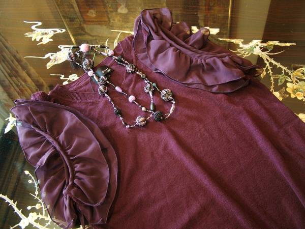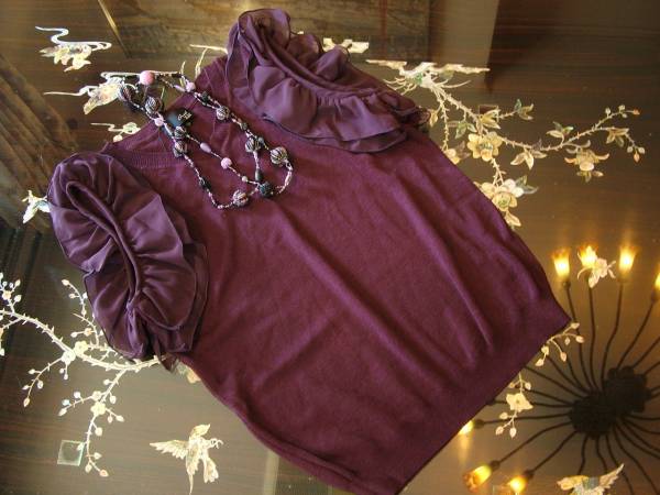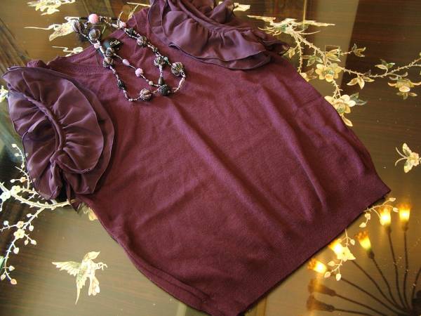 12,800円 日本製 グランターブル トップス ノースリー カットソー ワインレッド フリル 新品 スコットクラブ