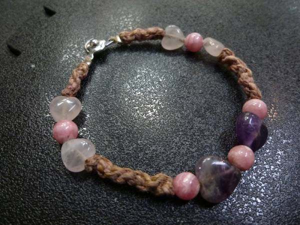 アメジスト ローズクォーツ インカローズ マクラメブレスレット