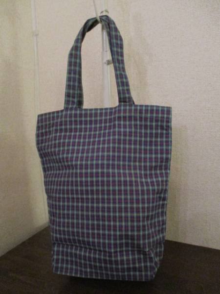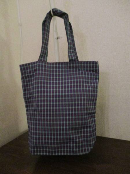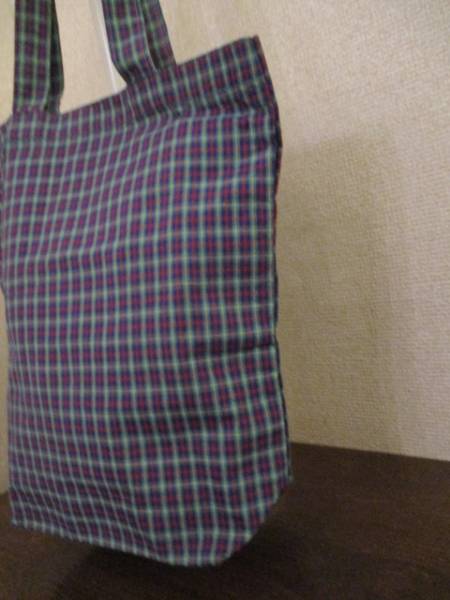 商品名 | 青緑×赤 チェック柄トートバッグ(USED)21617 |