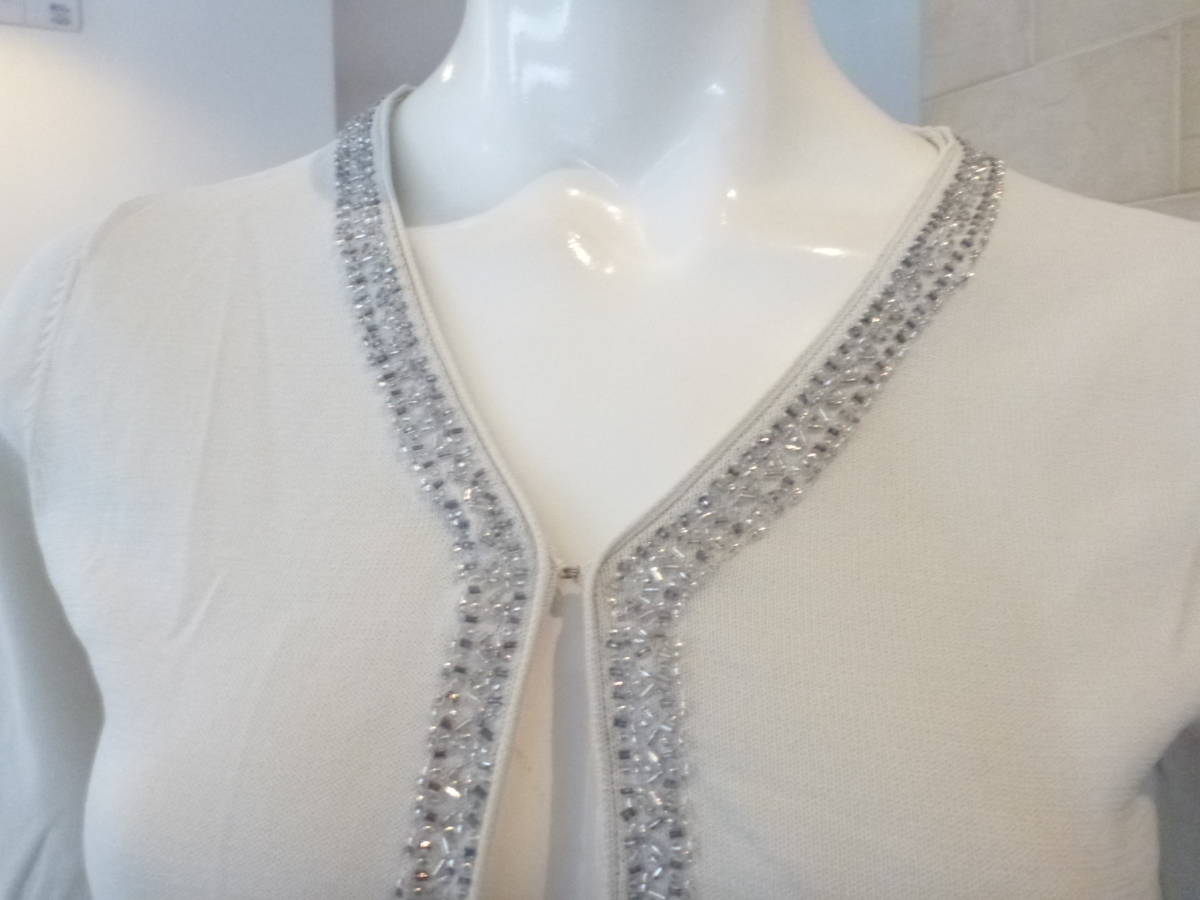 1.5万 INDIVI(インディヴィ)インディビ 薄グレー ビジュー カーディガン 5  XS相当 小さいサイズ
