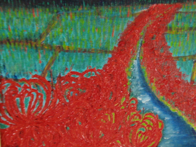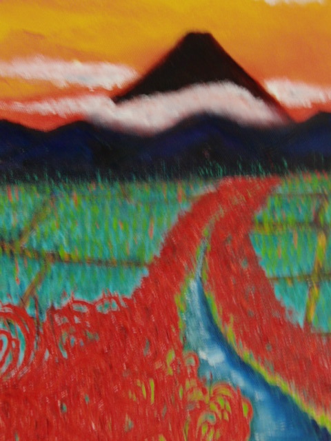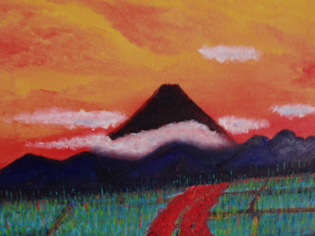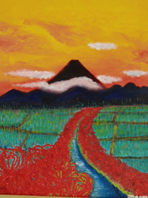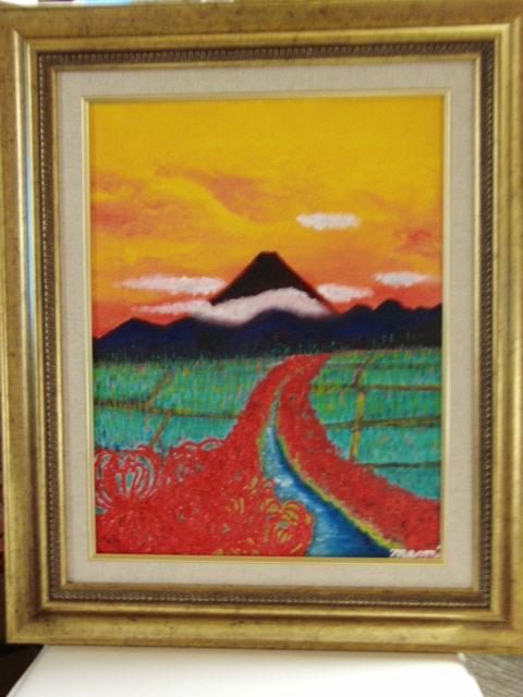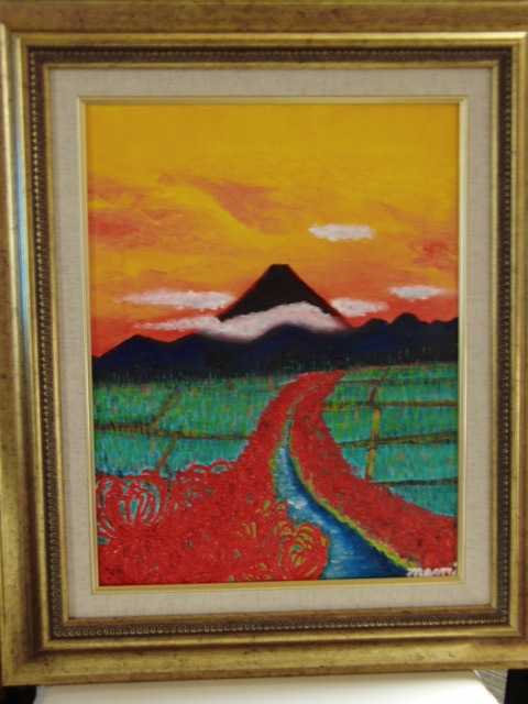 ≪国美協≫、佐藤めみ、『彼岸花と富士山』、油彩画、F6号:40,9×31,8cm、油絵一点物、新品高級油彩額付、直筆サイン・真作保証付
