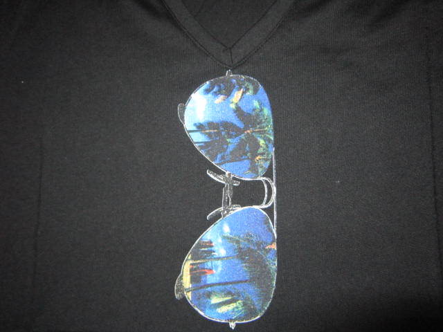 超レア!新品! ティアドロップ サングラス 転写 騙し絵 Vネック Tシャツ 黒 L だまし絵