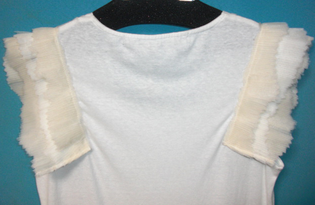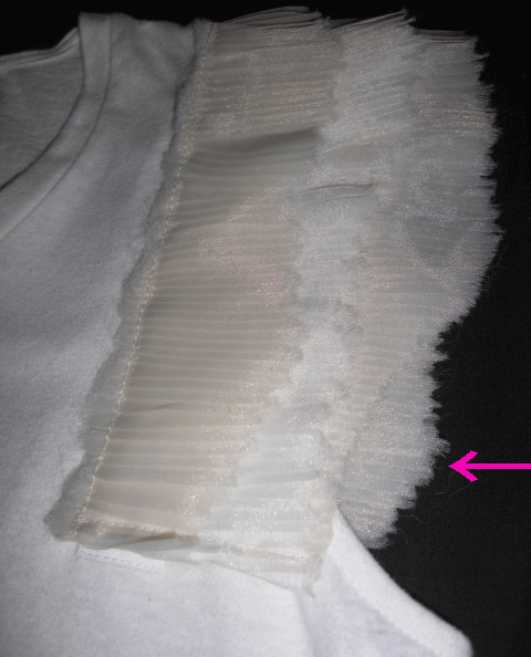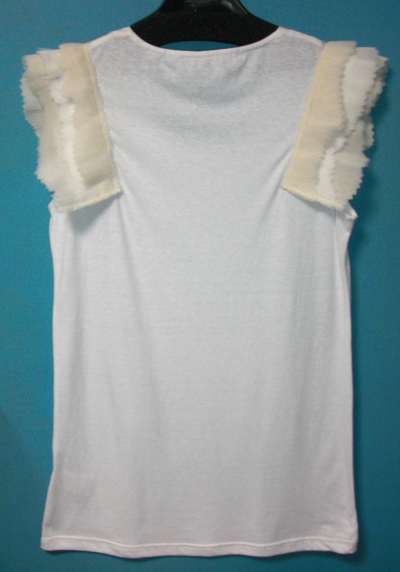 ノースリカットソーにプリーツフリルがあしらわれていて、とてもお洒落なお品です。