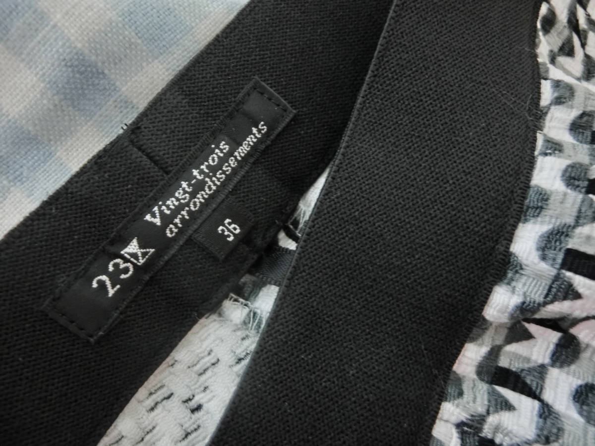 色は黒、グレー、白の柄 わずかに引き攣れあり 素材:ポリエステル98%ポリウレタン2% 日本製 サイズ36 ウエスト(ゴム)66cm~股下丈52.5cm股上丈24cm着丈74.5cm スリット3cm 他にも洋服、バッグ、靴、小物、本を出品していますので見てください。