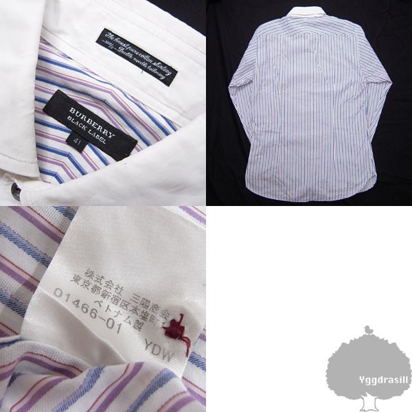 商品名:YGG★本物★バーバリーブラックレーベル ストライプシャツ パープル系 41 BERBERRY BLACK LABEL burberry