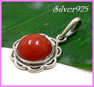 シルバー925銀のレッドカルサイト ラウンド型ペンダント/silverアクセ全品50%OFF