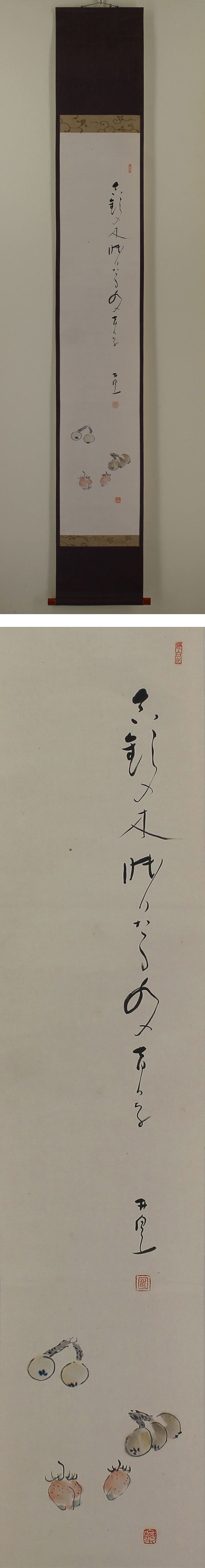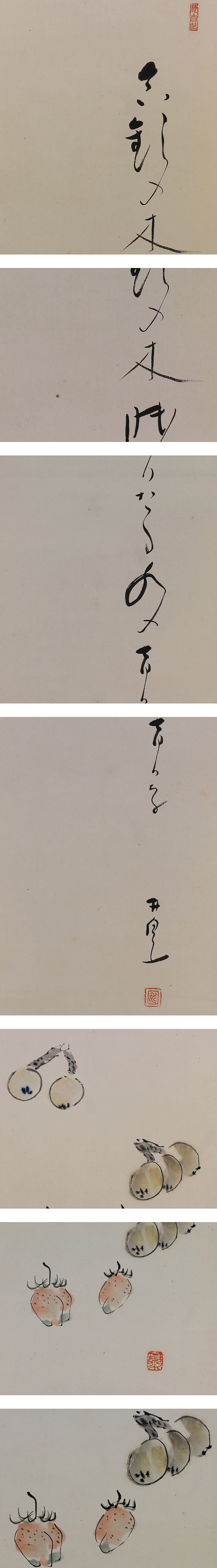 | №110366【真作】荻原井泉水【俳画 苺に枇杷】◆紙本◆合箱◆掛軸 | |