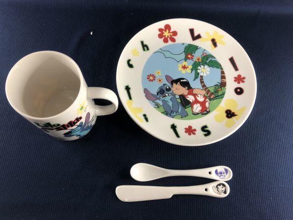 未使用品★ リロ&スティッチ ceramic dinner set セラミックディナーセット マグカップ プレート スプーンフォーク 箱あり管理1805 J-12