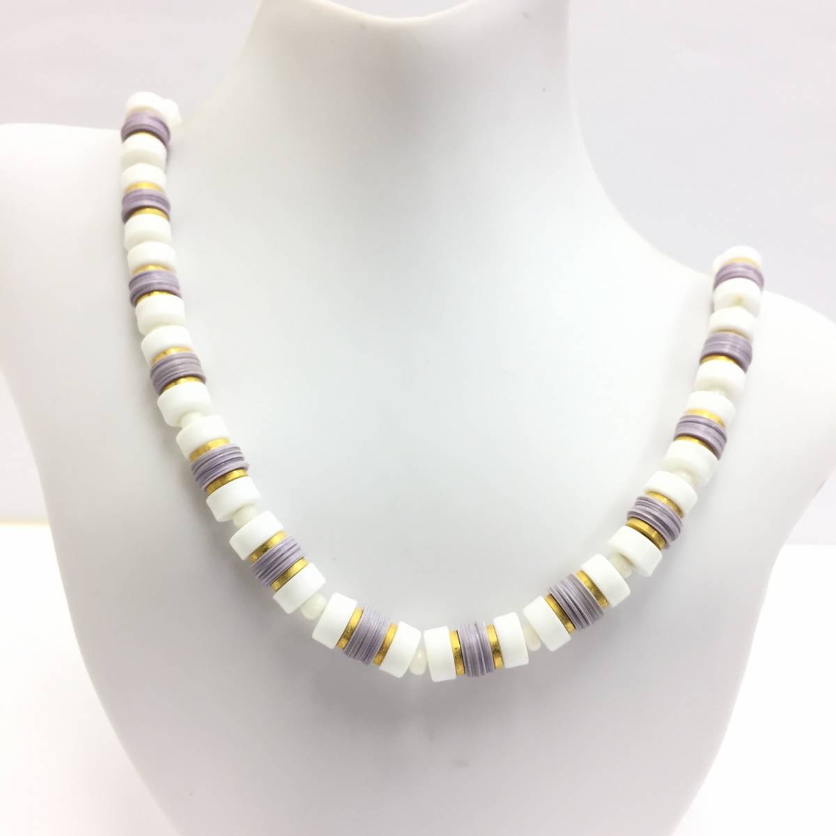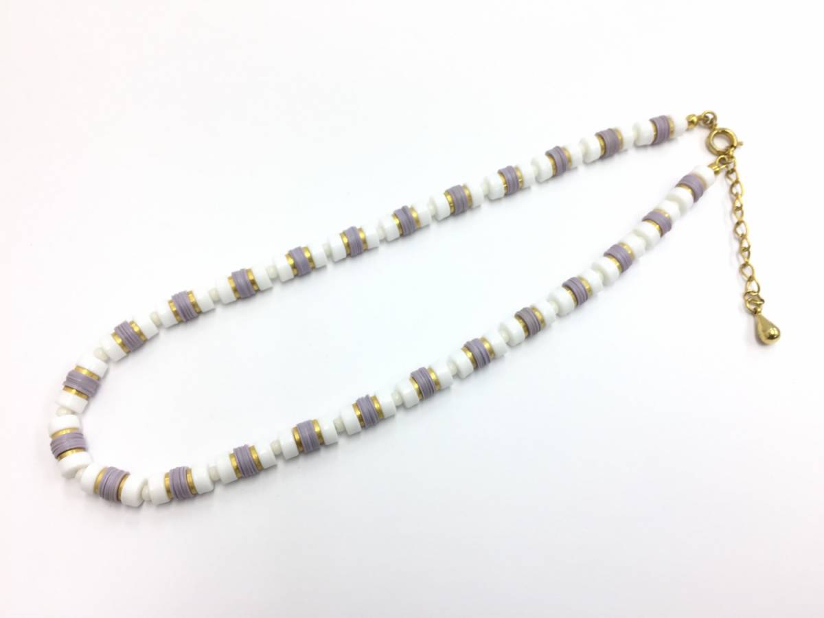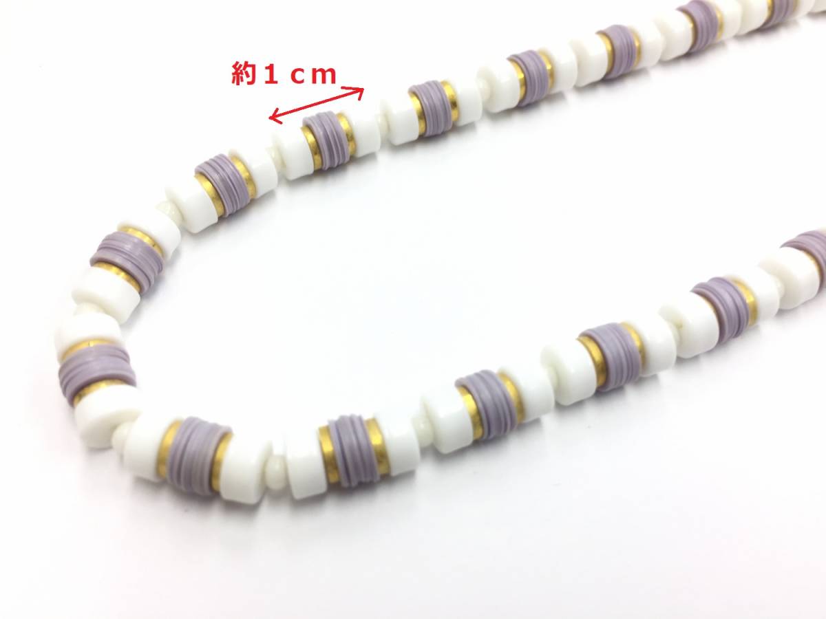 【ネックレス】約34+4cm ビーズ シンプル 紫×白 シック 上品 チョーカー