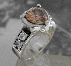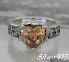 シルバー925銀のハート型オレンジジルコニア&ジルコニア4石付ジュエリー リング/9号.11号より