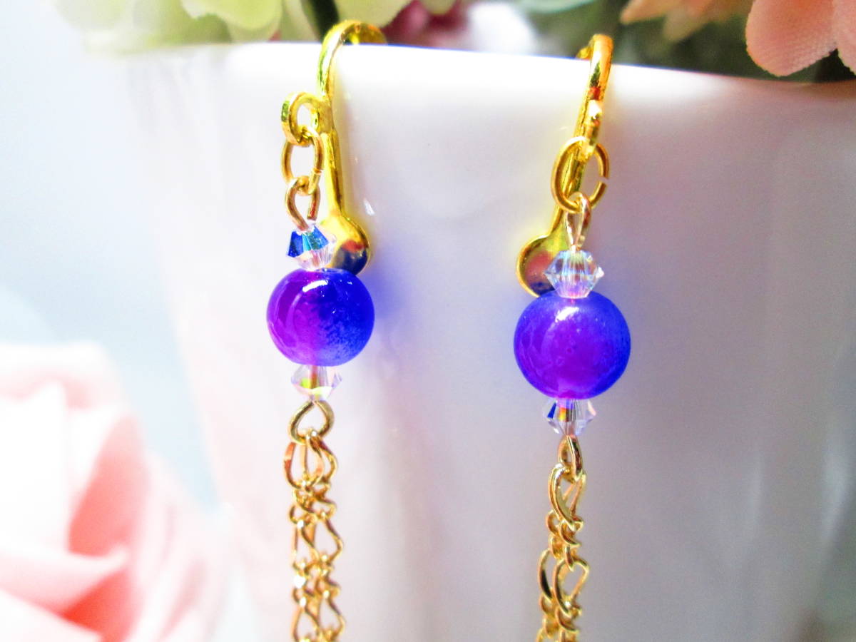 ★商品内容★ ★ブルーパープルとブラックタガーのハンドメイドイヤリング★クリスタル・金・スワロフスキー・ツイン・黒・青紫・ゴールド 爽やかなブルーパープルのガラスビーズとブラックビーズの組み合わせが シックで上品な落ち着きのある大人の女性らしさを印象付けます*。.・**.・**。.・**。 普段使いはもちろん、オフィスや お洒落のワンポイントにも最適です*。.・**.・**。.・**。 【素材】 ガラスビーズブルーグラデーション6mm チェコビーズダガージェット(チェコ産)3mmx10mm スワロフスキー5328クリスタルAB(オーストラリア製)3mm デザインチェーンゴールド カンより垂れ下がる長さは、約5.8㎝ Eー326 Pー35 ★商品状態★ ・画像と実物の色味が多少異なる場合があります。 ・緩衝材(プチプチ等)を使用し、防水梱包でお届け致します。 ★注意事項★ ***~ご購入前に必ずお読み下さい~*** ***商品について*** *一点一点心を込めて作っておりますが、手作りなため多少の歪み等あるかもしれません。 手作りの味わいと、世界で一つだけの作品とお考えいただければ幸いです。 *デリケートな商品ですので、強く引っ張ったりすると破損する事もあります。 お取り扱いにはご注意ください。 *写真も完璧な色合いの表現にはなっていない場合もあります。 *基本イヤリング金具は跳ね上げ式ネジ付きを使って作成しています。 ご希望によりピアスへの変更も承っております。 【フックピアスへの変更(無料)/キャッチピアスへの変更(別途追加料金120円)】 ~ご注文の際にメッセージ欄よりお申し付けください~ 尚、金具変更のご希望が無い場合は、掲載された写真の金具にてお送り致ます。 *金属アレルギーへの対応はしておりませんので、ご心配な方はご遠慮下さいますようお願い致します。 *永くご愛用頂くために、ご使用後は柔らかい布等で軽く拭いてください。 ***ご質問について*** *ご購入前にお願い致します。 日中は仕事をしておりますので、ご返事が直ぐに出来ない場合がございます。 出来る限り早い対応を心がけますが、ご了承ください。 また、発送までには、お振込み確認後、翌日の発送を心がけておりますが、仕事の都合により2~3日程かかる場合がございます。(その際にはナビにてご連絡いたします) お急ぎの場合は、極力対応いたしますが、場合によっては対応致しかねる事もあります。ご了承下さいませ。 落札後4日以内にお手続き、ご連絡が無い場合は落札者都合で削除致します。 発送日指定・ご入金の予定が1週間以上先をお考えの方は、入札の前に質問よりご連絡くださいませ。 予めご了承の上、ノークレーム・ノーリターンでお願い致します。 | |||