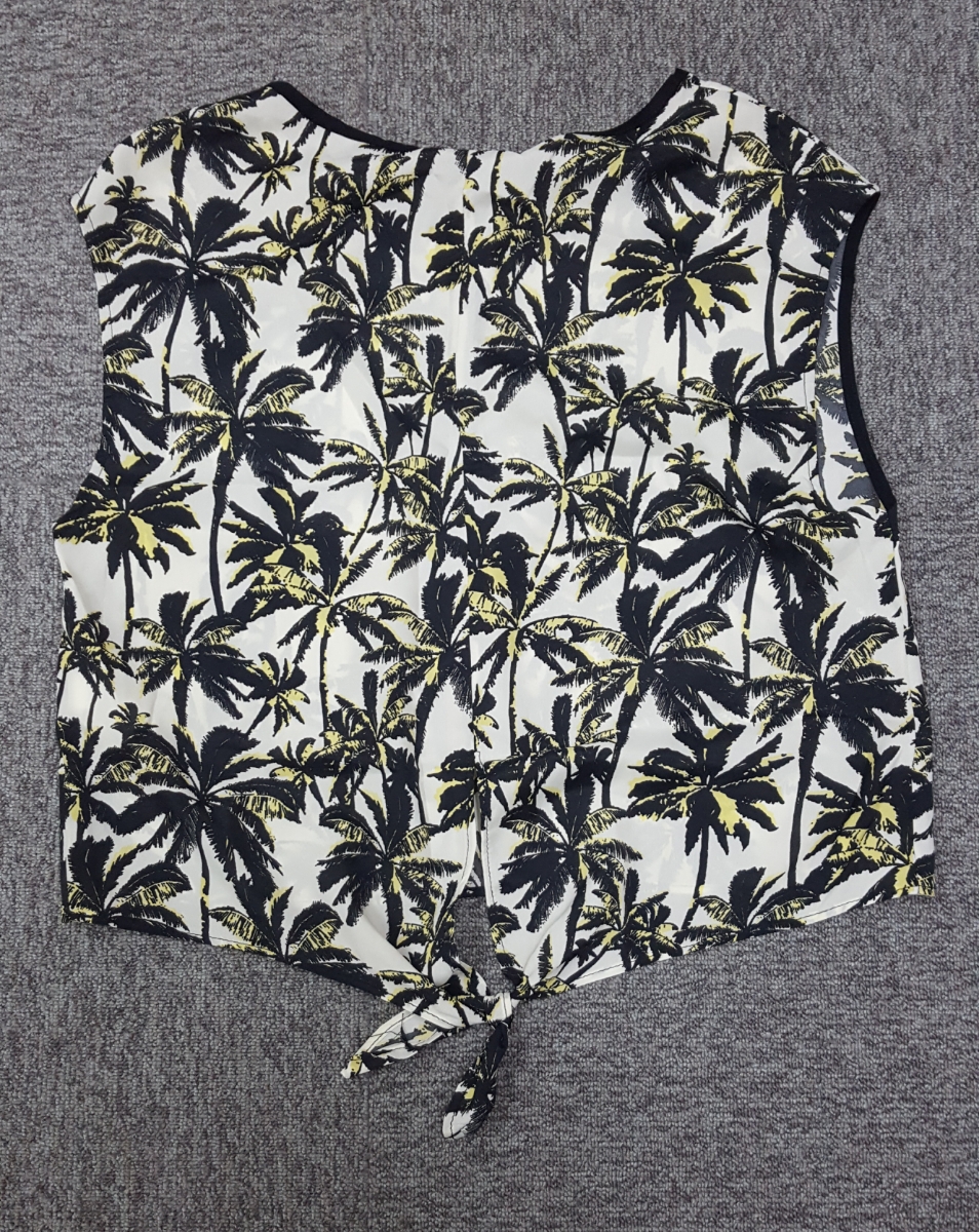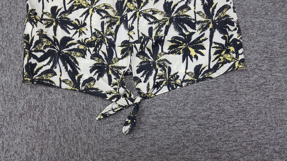 ヤシの実の柄がかわいく、バックは裾を結べるようになっております。